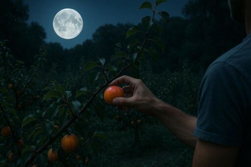 Tatsächlich war er nicht das erste Mal mitten in der Nacht ernten gewesen.