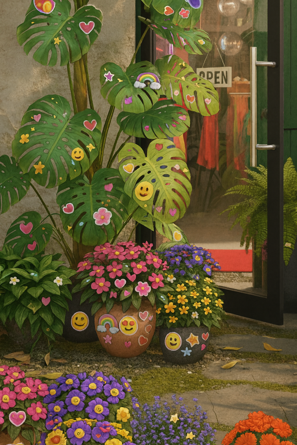 Oh, hallo ihr drei! Anni guckt kurz verwirrt auf die Pflanzen. Öh, das ist doch nur… naja, ein klein bisschen Grün für Stacys neue Boutique. Anni verdrängt manchmal, dass das, was für sie die Mindestausstattung an Pflanzen für ein Zimmer ist, für andere wie ein Urwald wirken könnte. Wollte ihr das rechtzeitig vorbeibringen, bevor eröffnet wird. Und ihr, wohin seid ihr unterwegs?